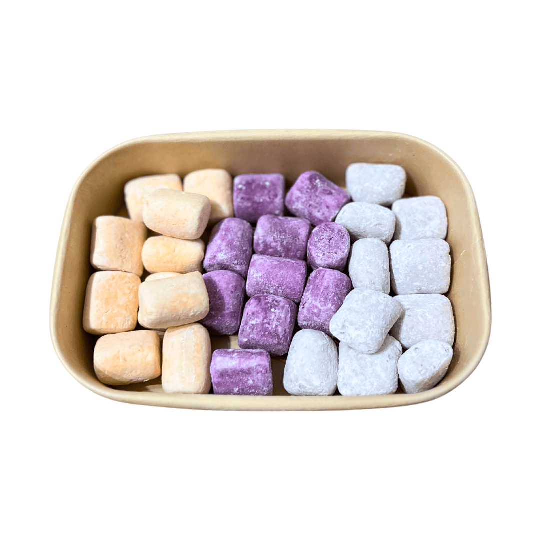 A mix of 30 chewy taro, yellow sweet potato, and purple sweet potato balls—colorful, tasty, and ready to cook.